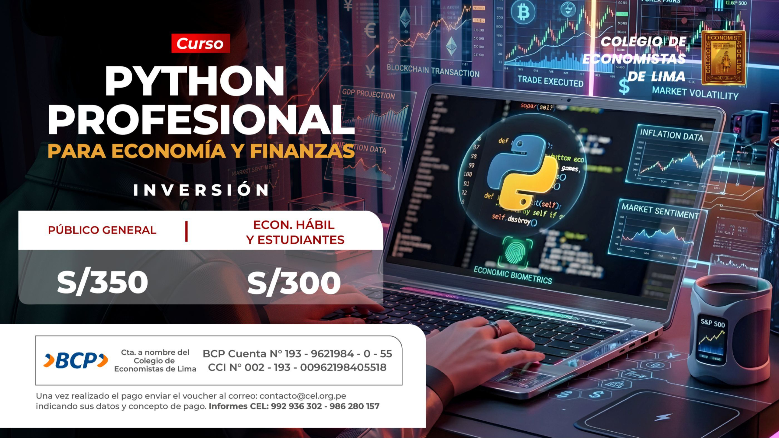 - El curso est谩 dirigido a estudiantes, egresados y profesionales de econom铆a, finanzas y carreras afines interesados en la ciencia de datos.